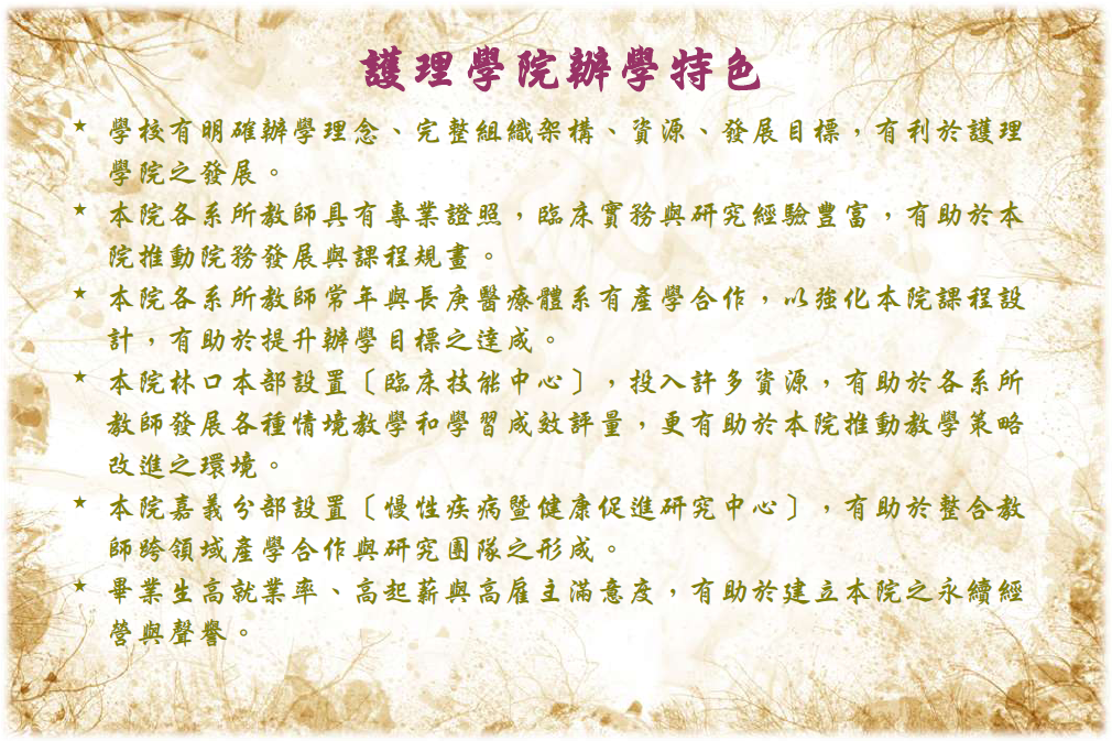 *學校有明確辦學理念、完整組織架構、資源、發展目標,有利於護理學院之發展。